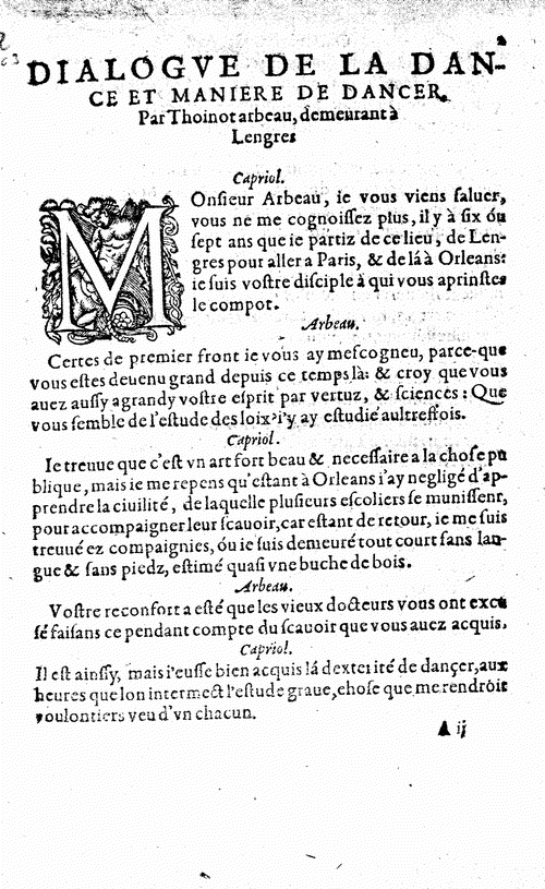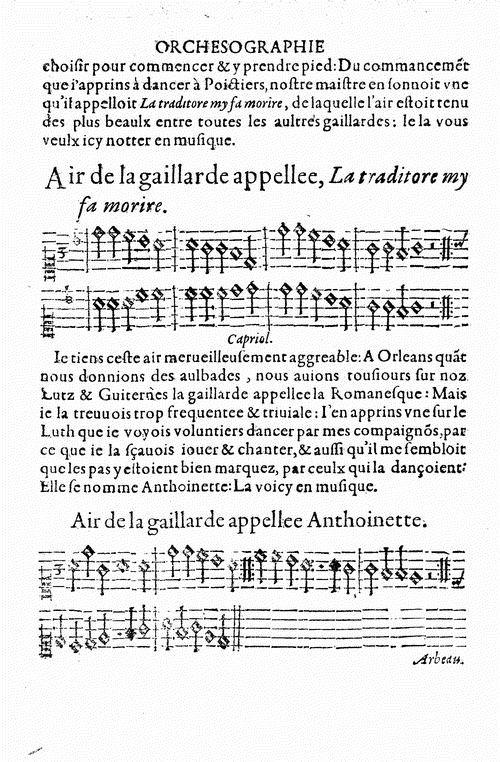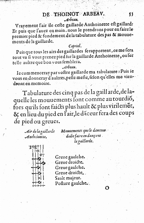 Después de haber presenciado una Gallarda creo que está completamente justificado que nuestro amigo Jean Tabourot decidiera firmar con un seudónimo su ORCHESOGRAPHIE, porque convencida estoy de que no hubiera podido salir bien parado de la censura eclesiástica, teniendo en cuenta su condición de sacerdote.
